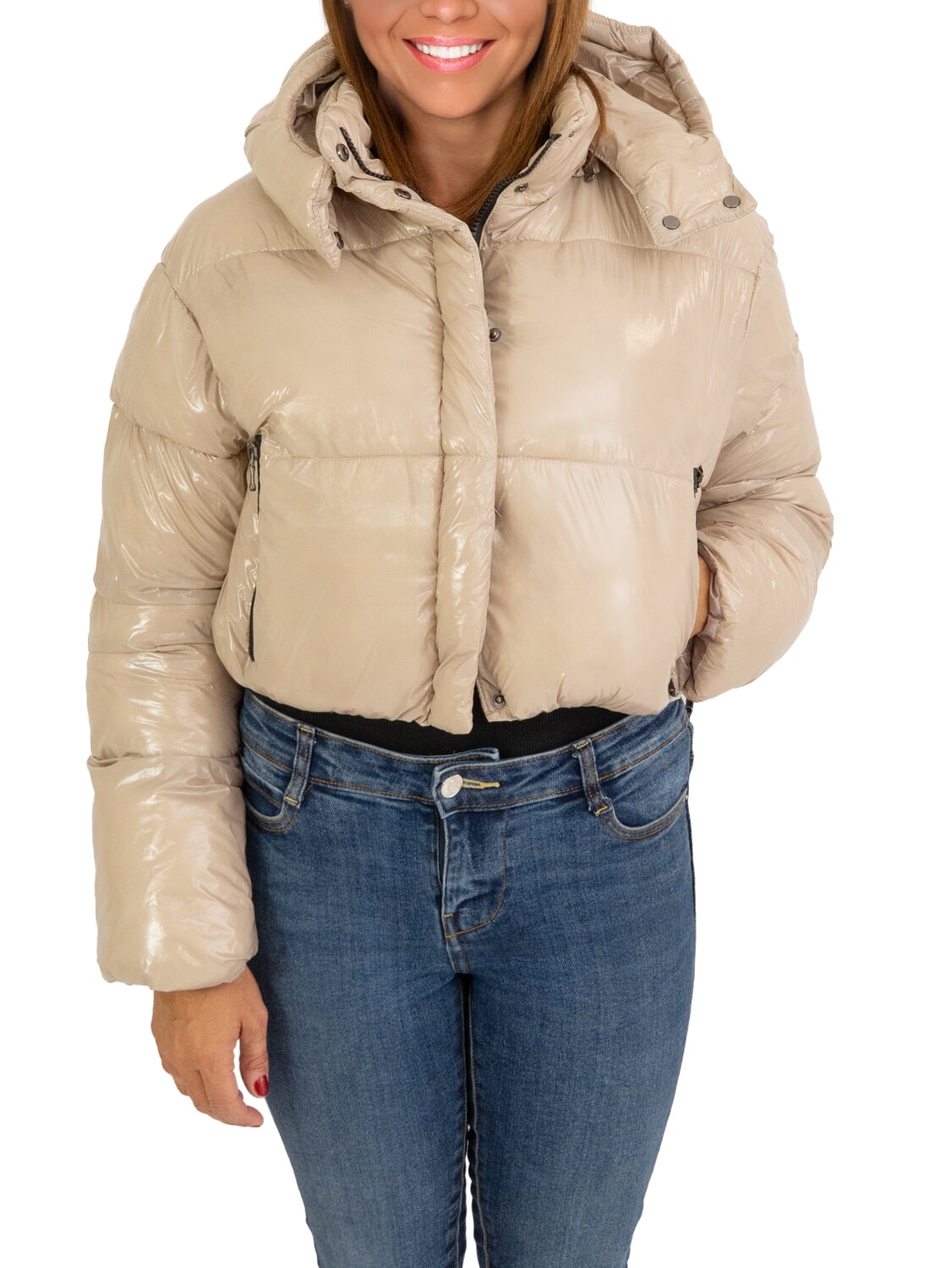 MINGAN Doudoune courte brillante à capuche