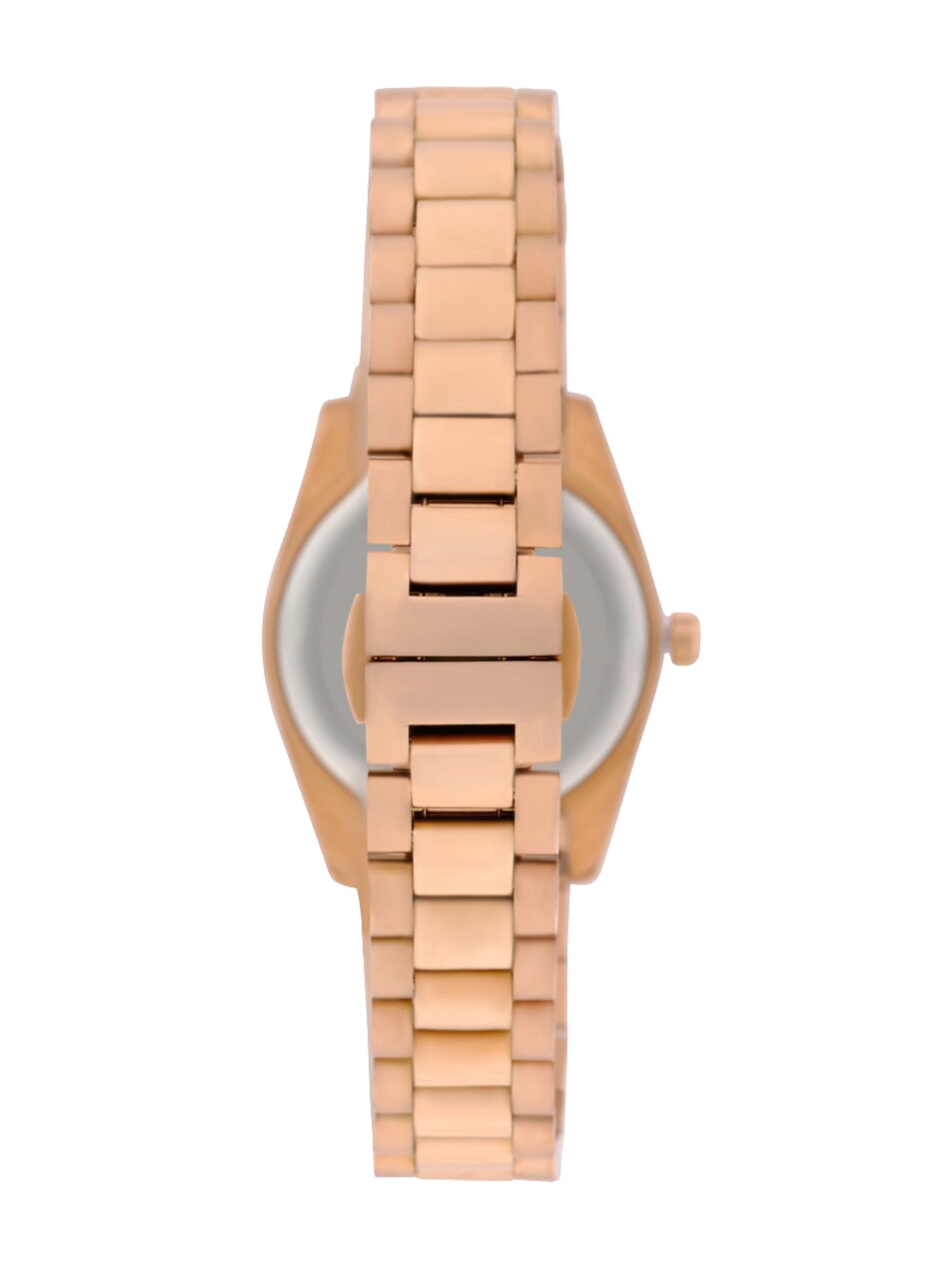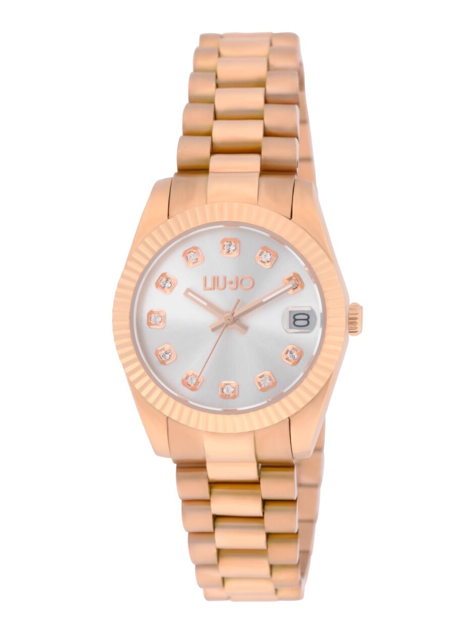 Cadran rose avec aiguilles dorées contrastantes et index en pierre