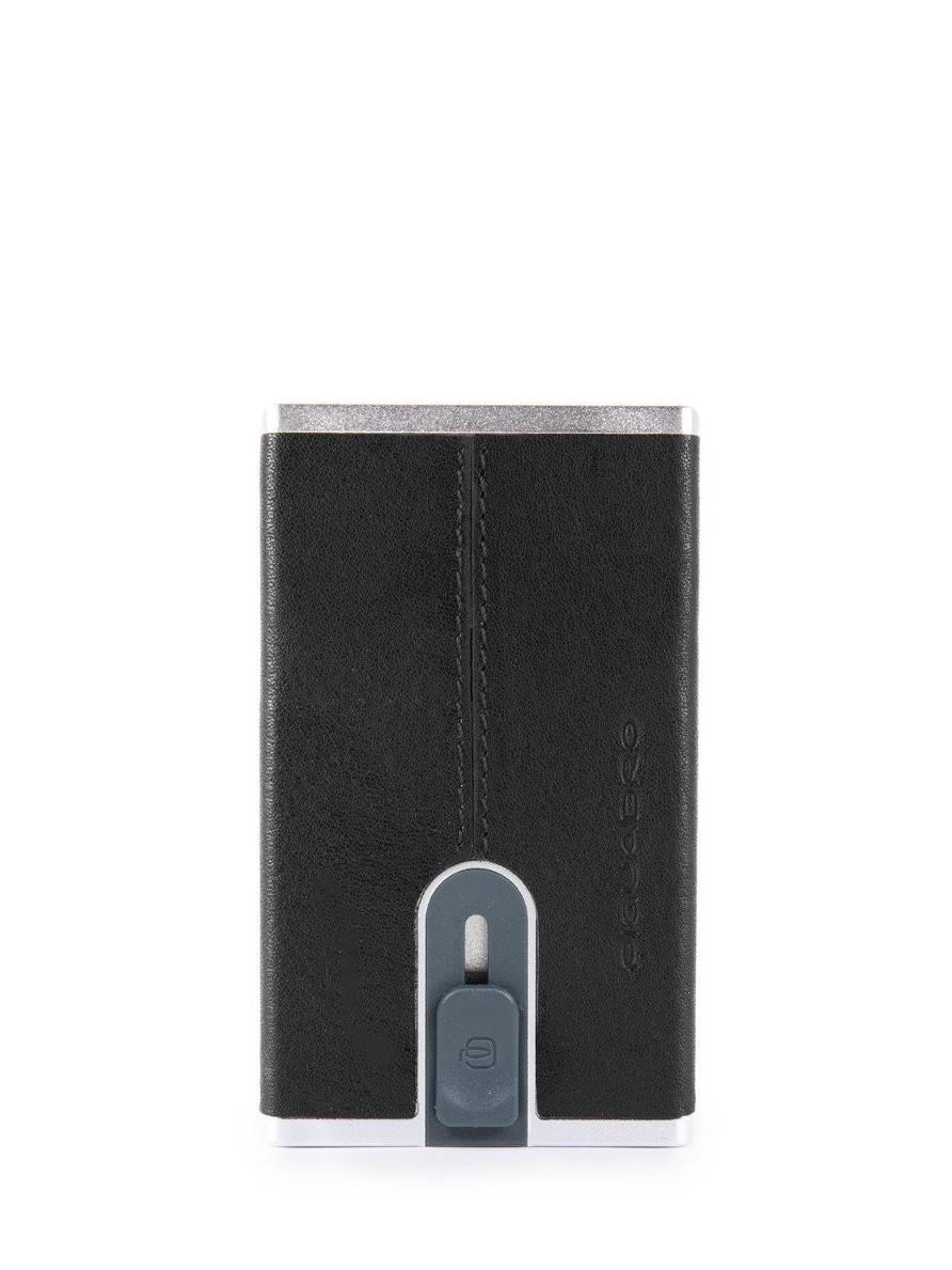 BLACK SQUARE Porte-cartes métallique recouvert de cuir