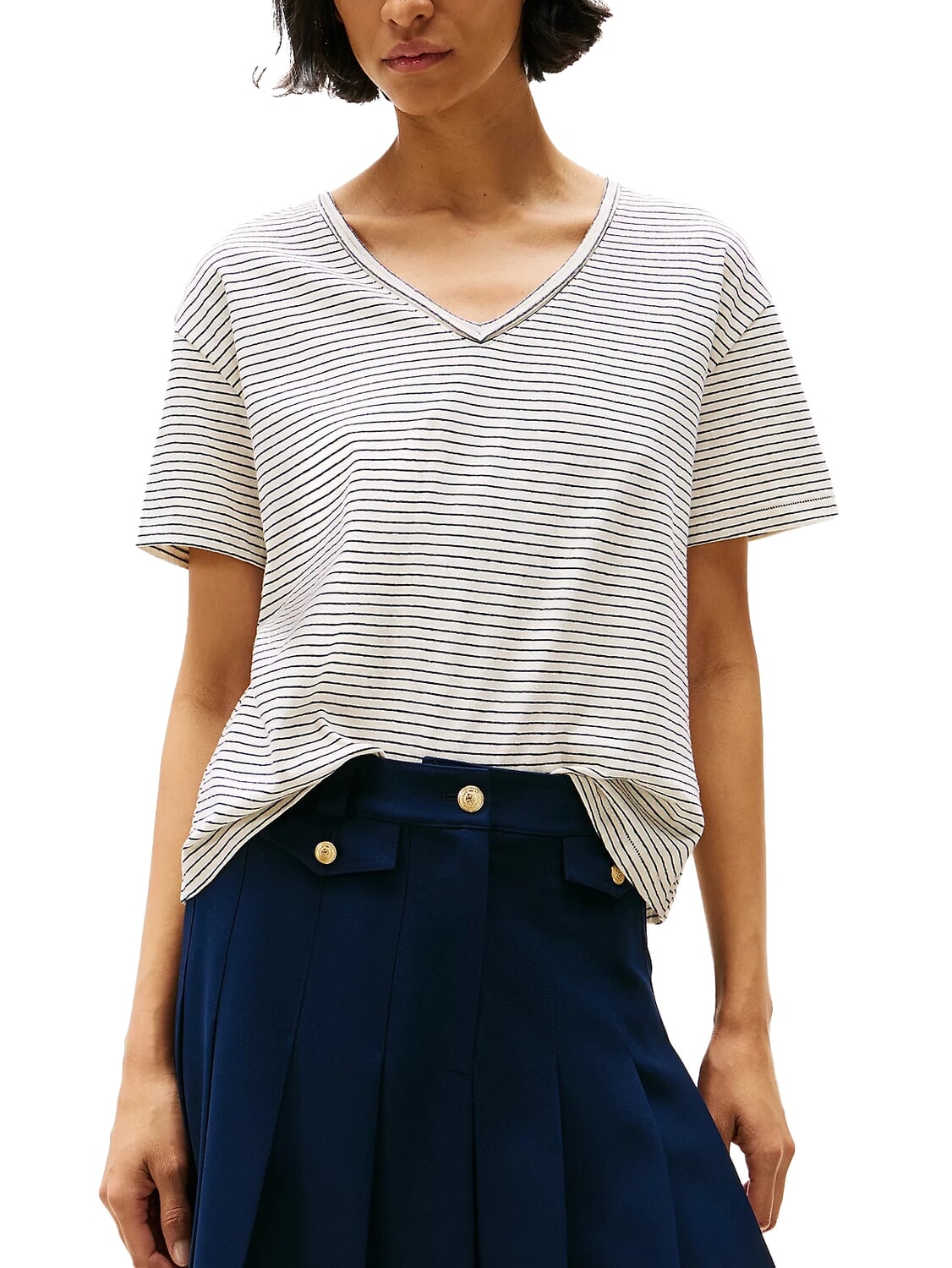TH T-shirt coupe décontractée à col en V